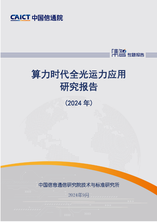 中國信息通信研究院(簡稱“中國信通院”)長期深耕光通信網技術與業務研究領域,在光通信網絡技術、專線業務能力與資源管理等方面有深厚技術積累。為幫助各界深化對全光運力行業應用產業共識,中國信通院技術與標準研究所編制了《算力時代全光運力應用研究報告(2024年)》,并于2024年9月28日召開的“2024年中國算力大會 全光品質運力論壇成果發布會”發布。