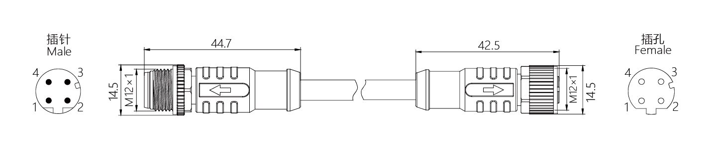 規格描述:M12-M12,直型針-直型孔,D-Code